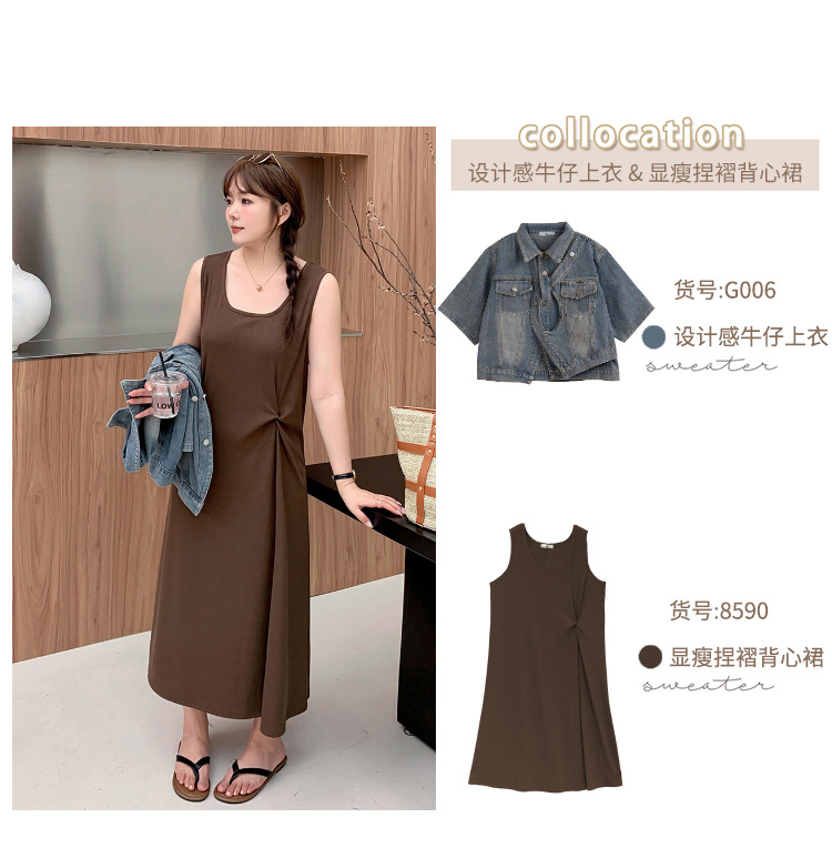 敲基础bai搭的腰间捏褶圆领背心裙