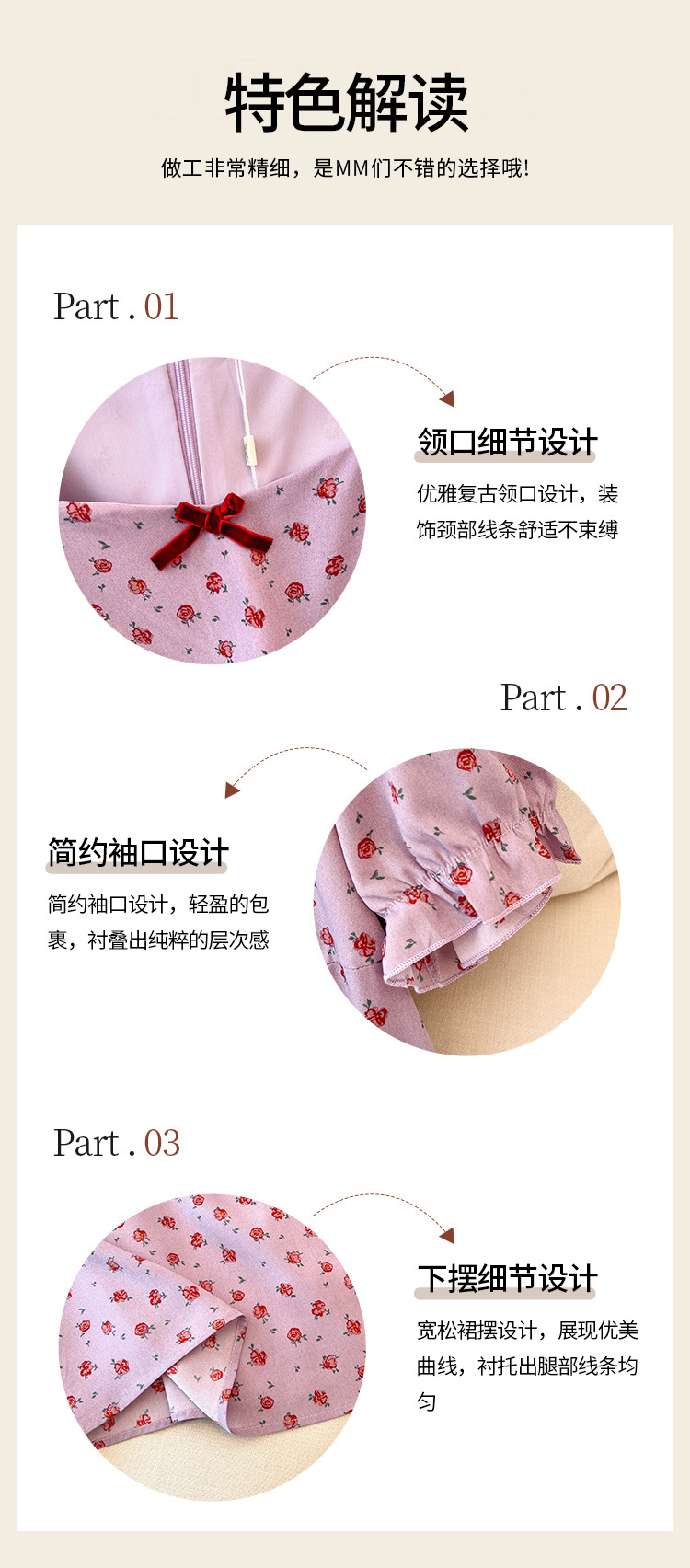 细节说明:布料微弹,后背拉链,带内衬,许嵩说过紫色更韵味,喜欢可以试一下哦