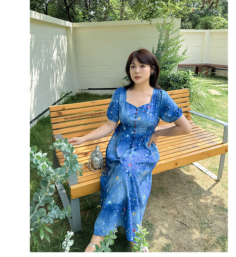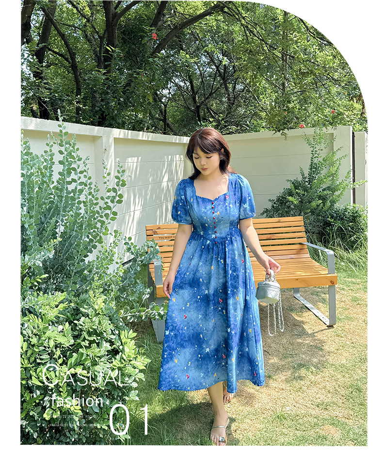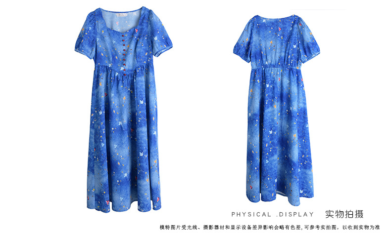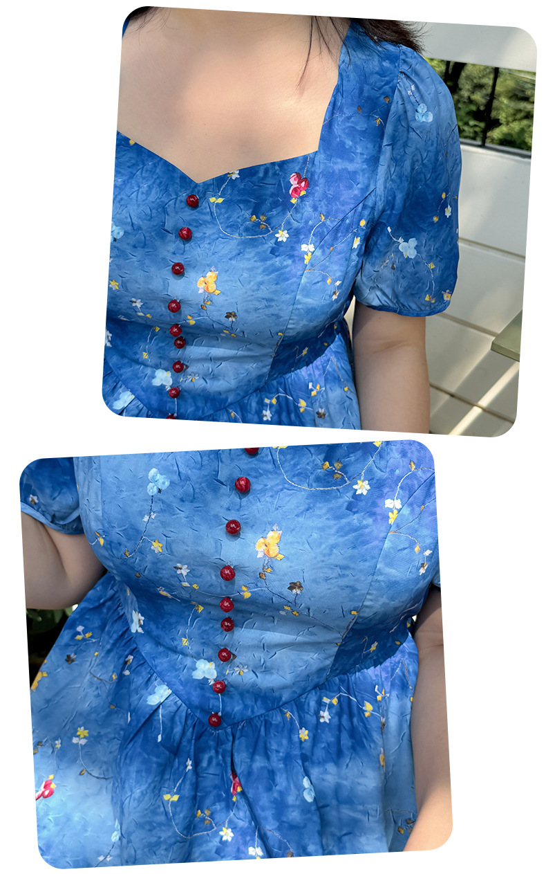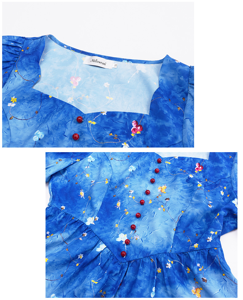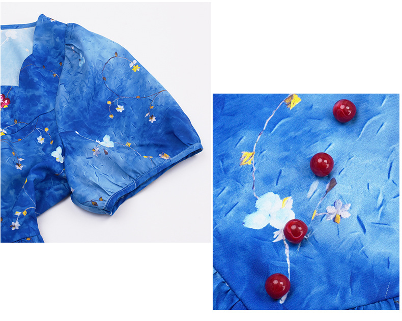 珠扣印花连衣裙