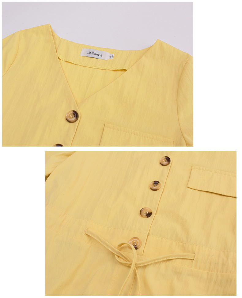 V领型,前中有系扣,可以解开