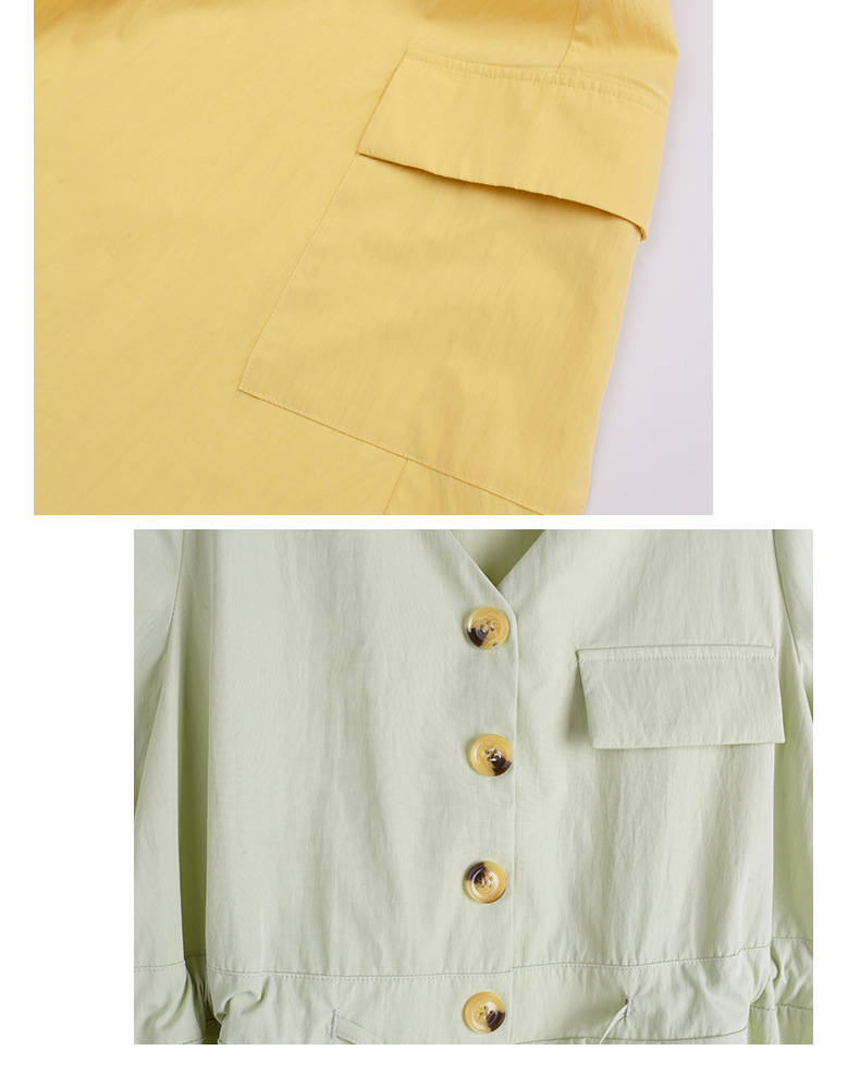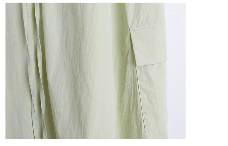 胸前有装饰袋盖,腰部有抽绳设计,可调节腰围尺码