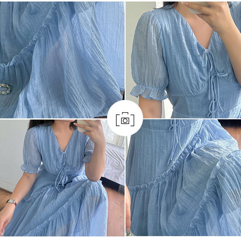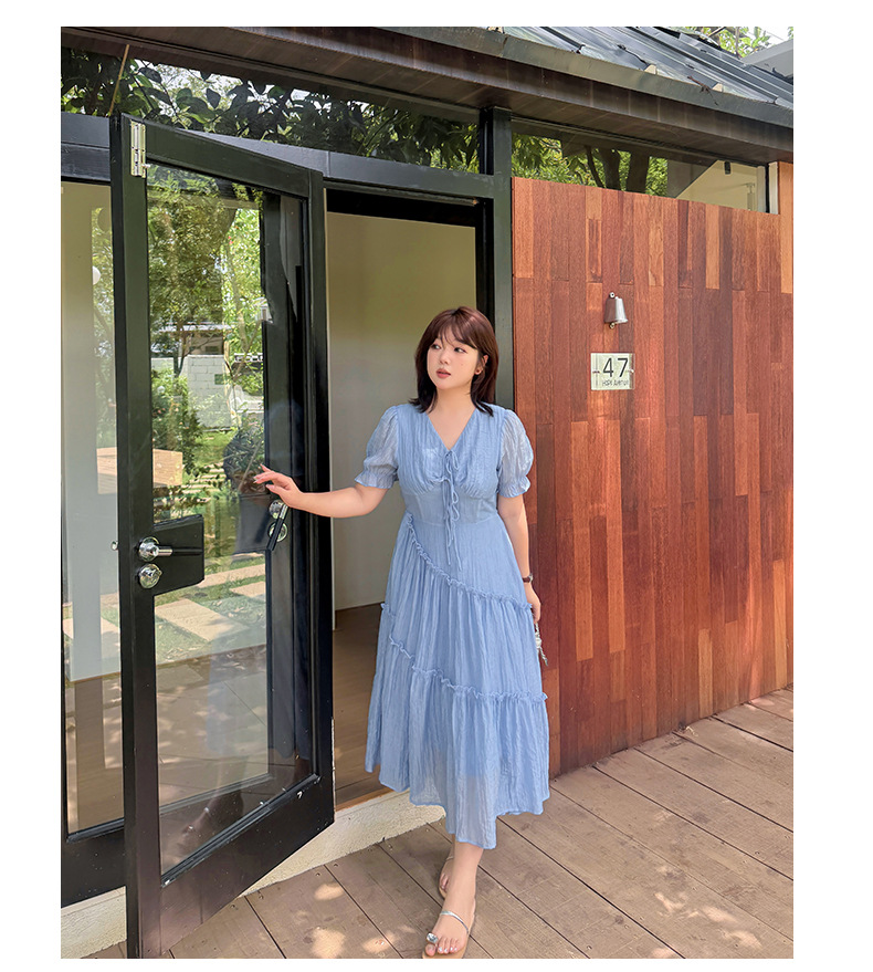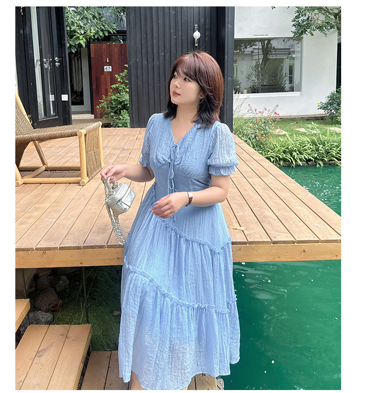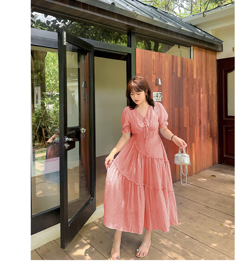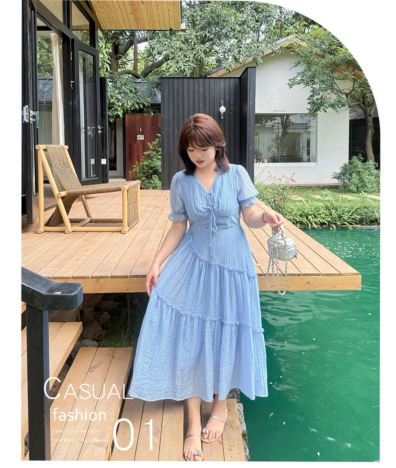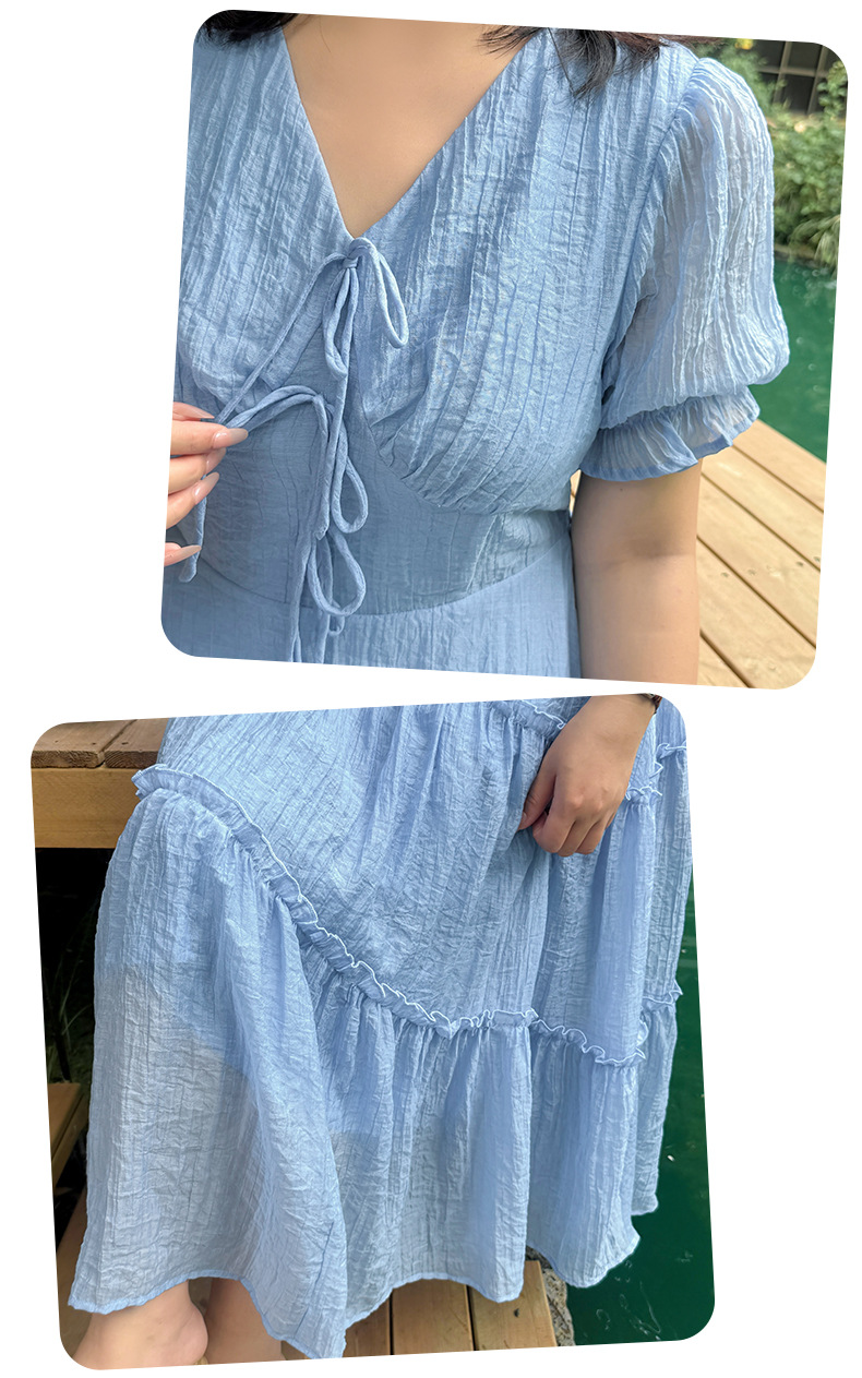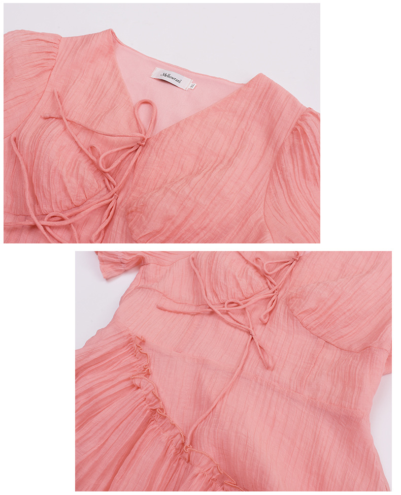 V领系带连衣裙